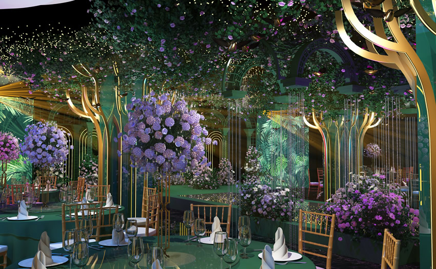 装饰和细节:考虑使用什么样的装饰物和家具。比如,鲜花,烛光,墙壁装饰,座椅装饰等。这些都可以增加婚礼堂的氛围。